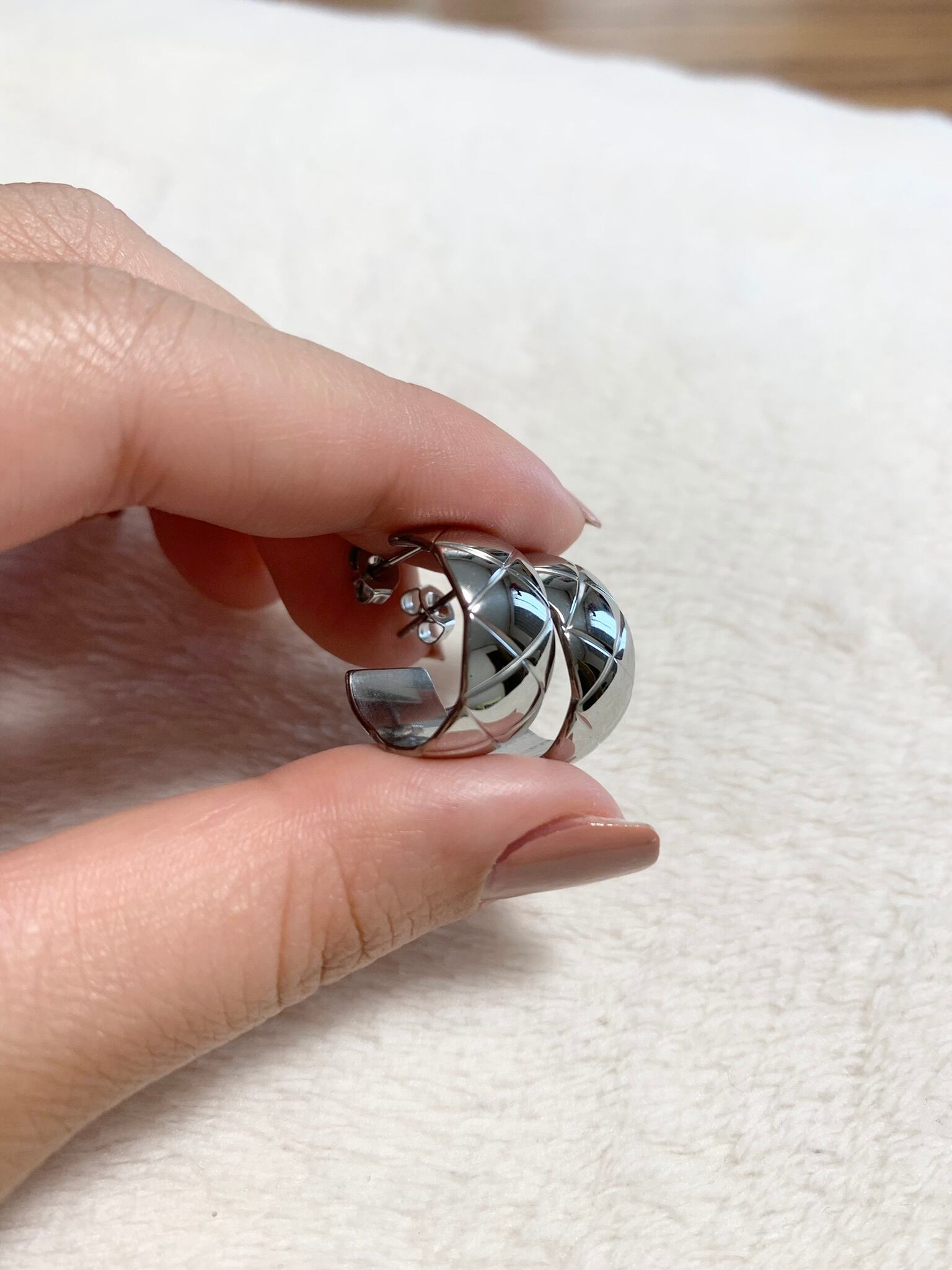 存在感のあるM sizeのキルティングフープピアス