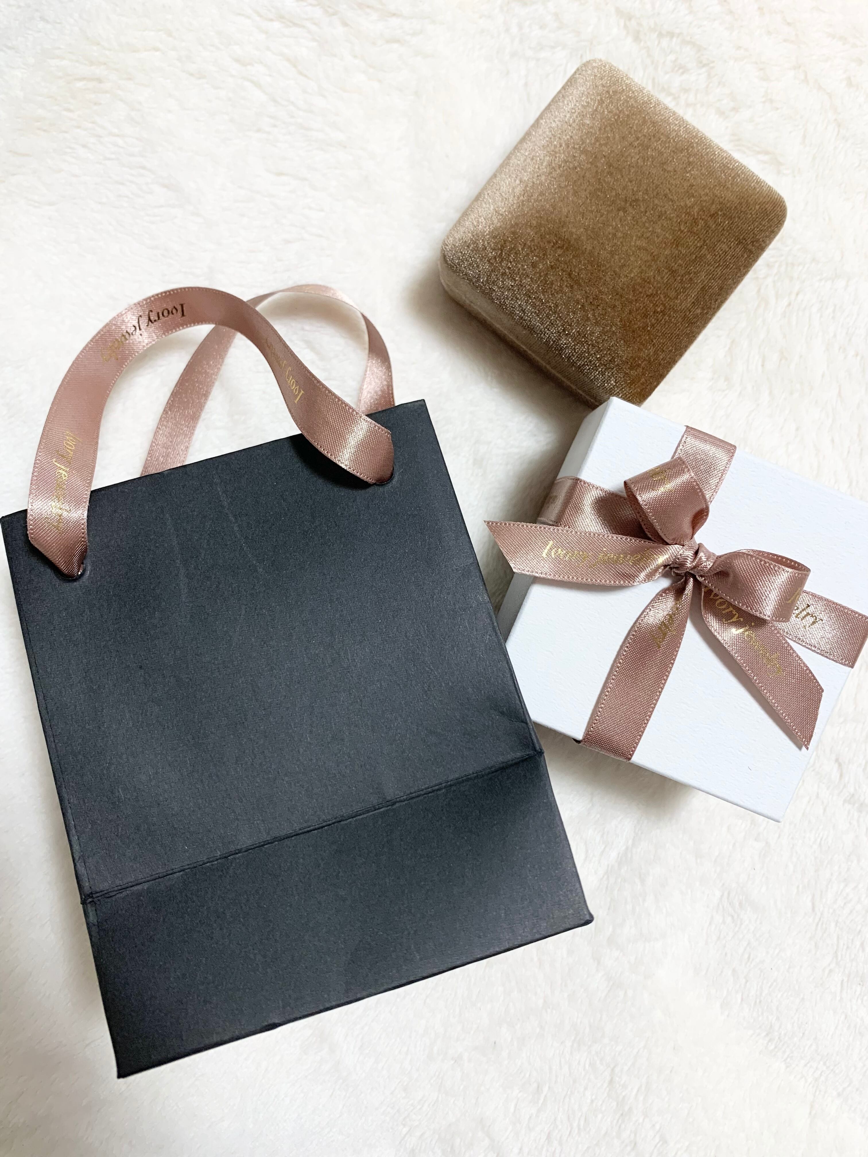 ロゴ入りアクセサリーBOXにお買い上げのアクセサリーをセットし、リボン掛け致します。