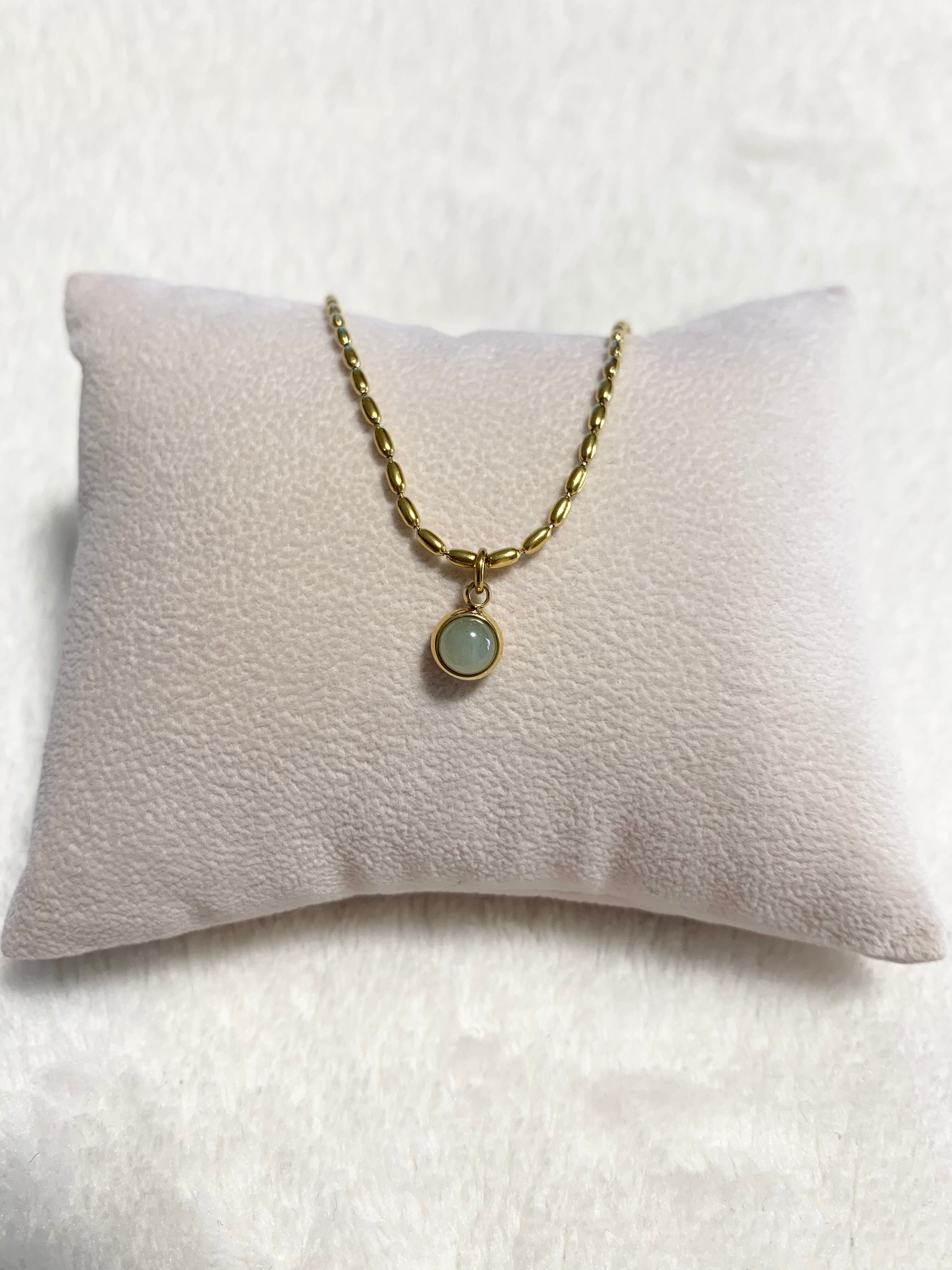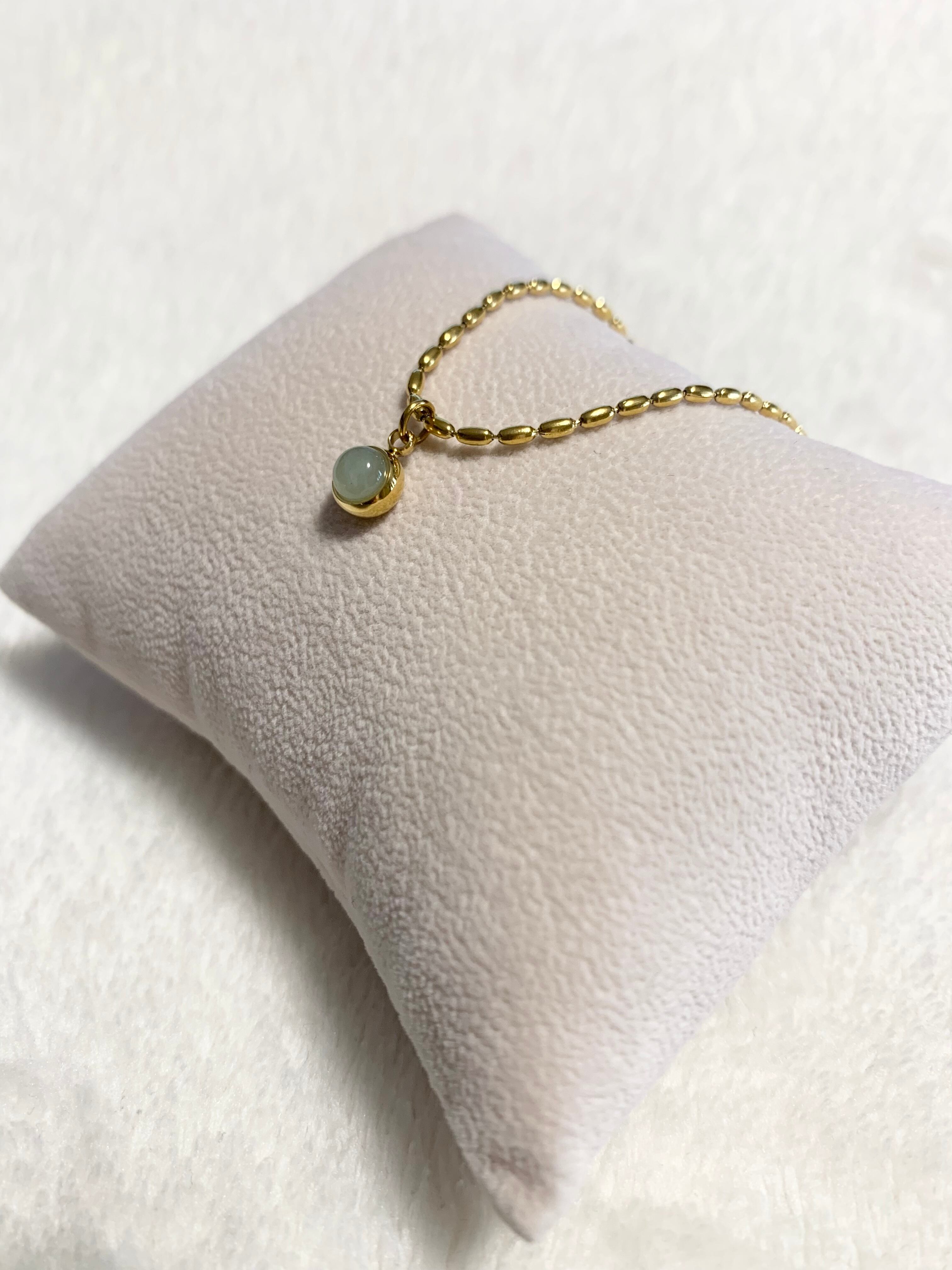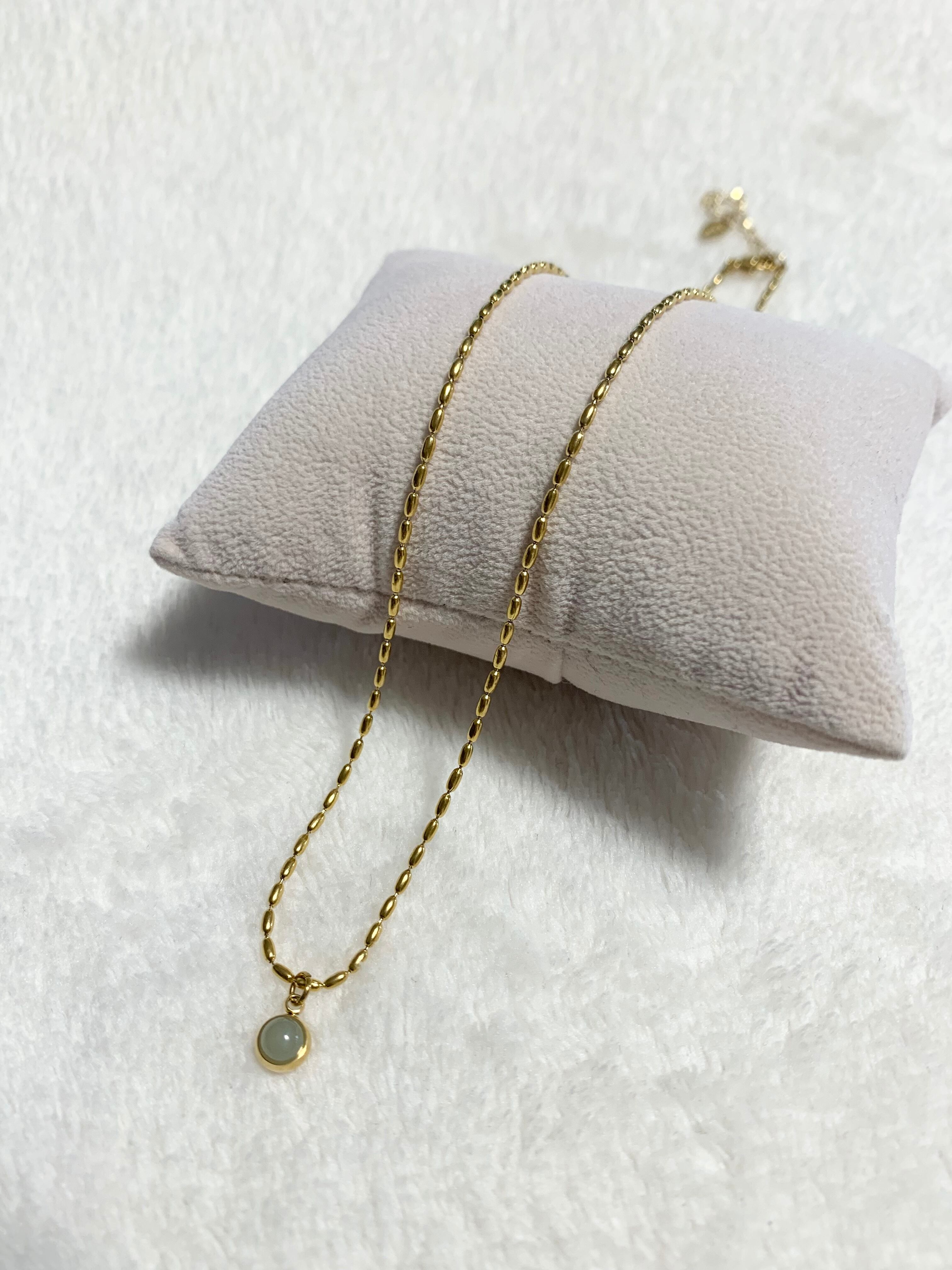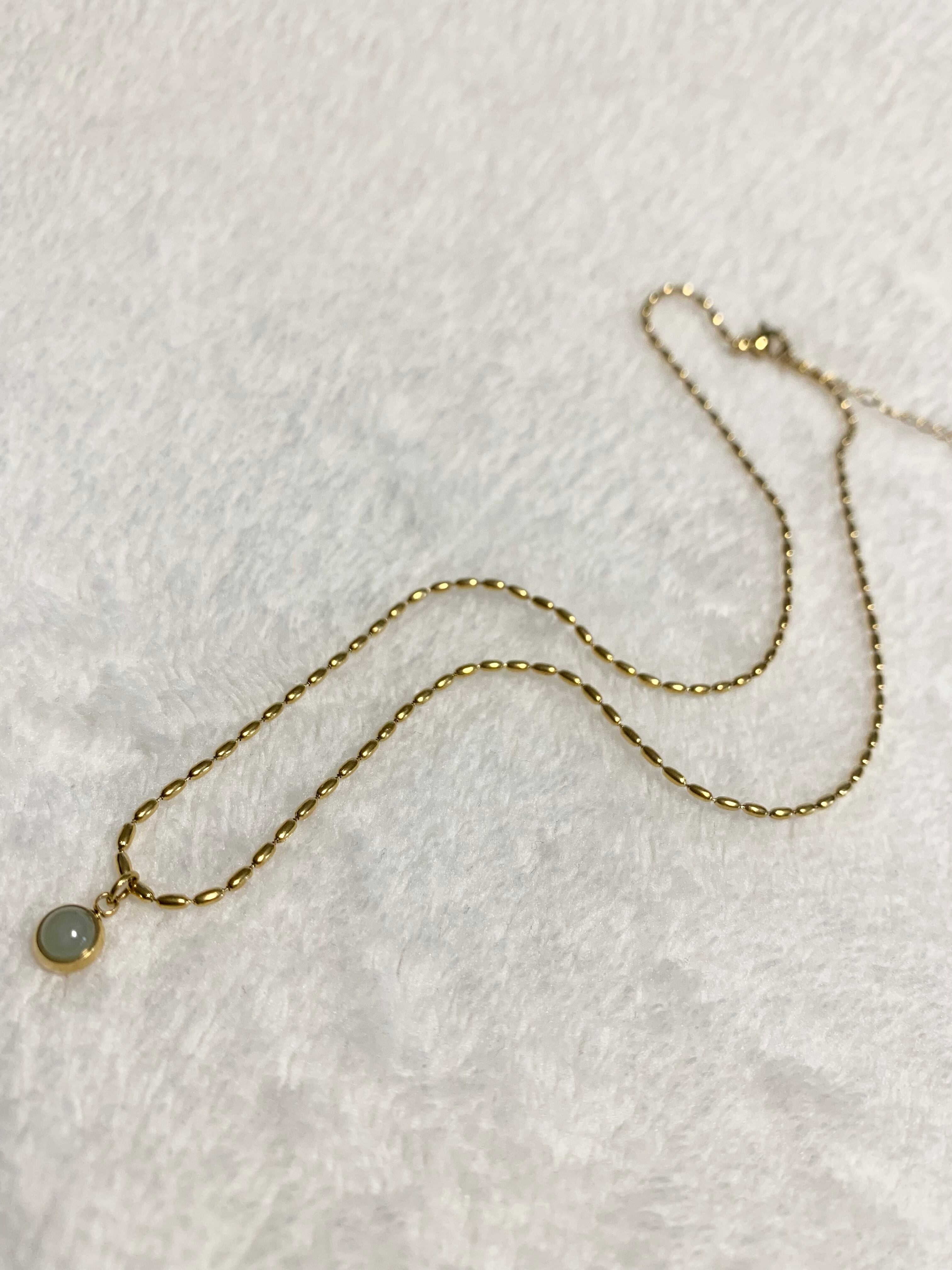 オーバルのボールチェーン×インド翡翠とも言われる、天然石アベンチュリンをトップに使ったネックレスです。